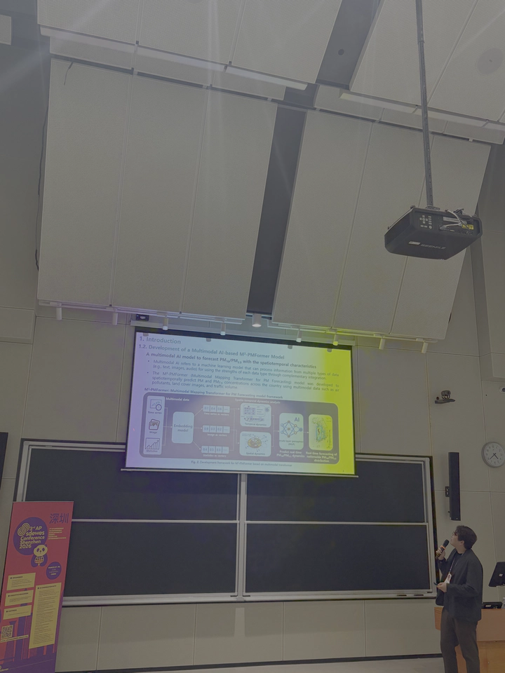 SeonJu Kim presented “M³-PMFormer: A Multimodal mapping transformer for citywide spatio-temporal PM forecasting in Korea” at AP-SDEWES 2026, Shenzhen, China. The presentation focused on the development of mulitmodal AI framework for predicting particulate matter (PM) dynamics across the South Korea, with emphasis on real-time and multi-step prediction of PM.